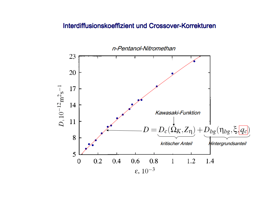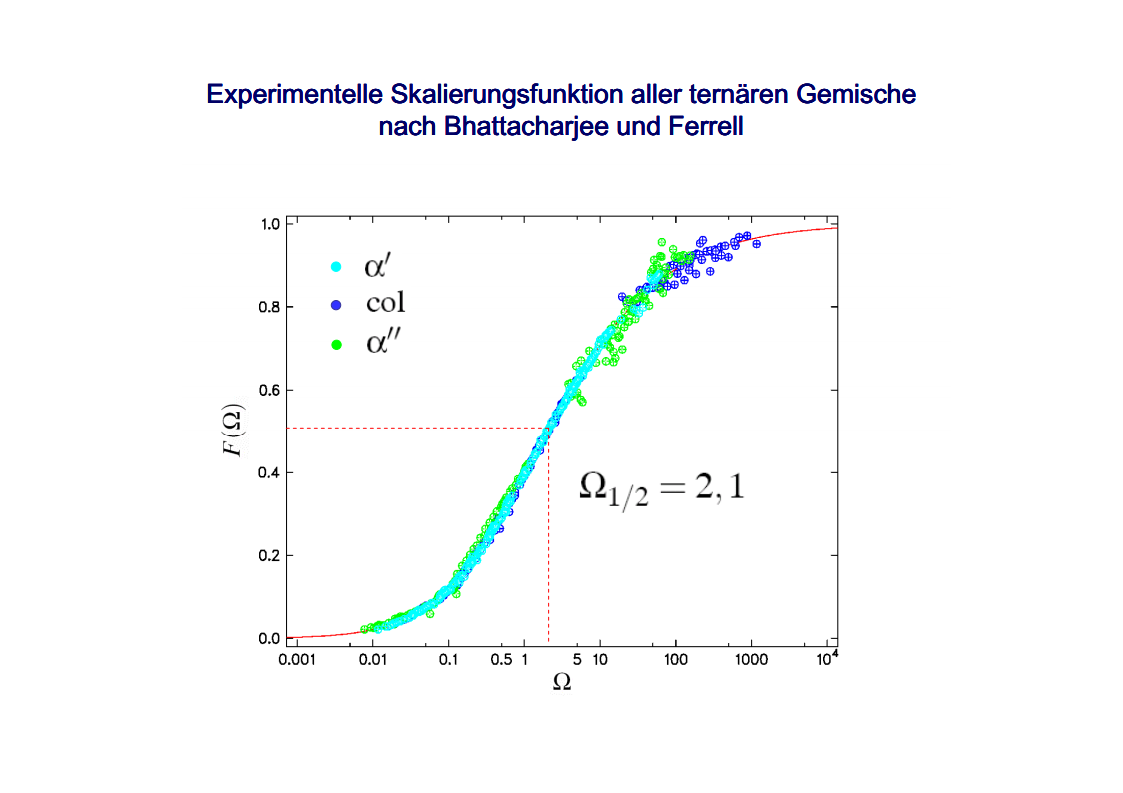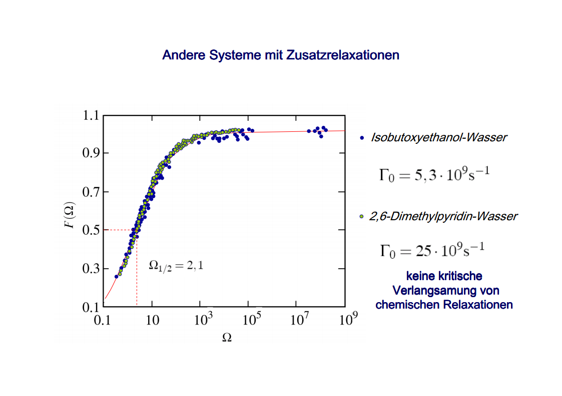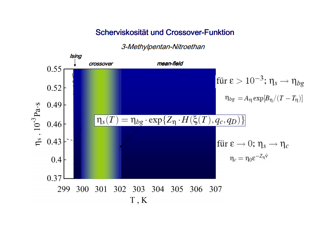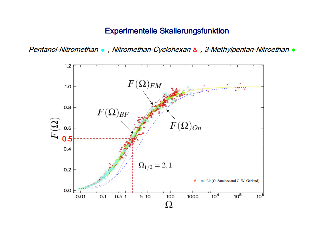 The focus of those investigations were the critical phenomena, in particular the critical slowing down of the phase separation near the critical point of binary colloid-polymer mixtures in a micro gravity environment. The aim of such investigations was to develop fundamental physical concepts previously which had so far been masked by gravity effects. A first qualitative description of the critical behavior of some special systems was already given at the beginning of last century. Examples are liquid/gas transition and the ferro/paramagnetism transition. An essential step towards a deeper understanding of critical behavior was made by Landau’s general theory of phase transitions. Later the theory has been further developed by Onsager, which found the exact solution for the thermodynamic properties of a two-dimensional Ising model, that had been frequently discussed. It was a great surprise to find the theory of Landau to fail completely in predicting the behavior close to the critical point. Fisher, played a leading role by his analysis of experimental data, combining theoretical analysis and numerical calculations. Important theoretical contributions have been made by Widom, Patashinskii and Pokrovski, and most important by Kadanoff. Kadanoff put forward a very important new and original idea which seemed to have a strong influence on the later development of the field. However, his theory did not allow to calculate the critical behavior. The problem was solved in a comprehensive and profound way by Wilson. Wilson was the first to realize that critical phenomena are different from most other phenomena in physics in that close to the critical point one has to deal with fluctuations over widely different scales of length. Nevertheless, investigations which have been performed on critical system have indicated the description of their behavior is not sufficient for a wide temperature range. The range between the background and mean-field behavior could not be described satisfactorily by classic theories of critical phenomena. Consequently, a new formalism has been developed by Albright, Burstyn, Sengers, Bhattacharjee and Ferrell, to describe the range between the consolute point and background behavior. This formalism is named crossover theory.The ideas of universality appear to be also applicable to phase transitions in complex fluids like polymers and polymer solutions, micro-emulsions and liquid crystals, fluids in porous media as well as phospholipid bilayer vesicle solutions. Besides dynamic light scattering an important measurement method to study the cooperative effects in complex fluids is the broad band ultrasonic spectroscopy. Being a non-destructive technique it allows for the measurement of chemical relaxations as well as critical fluctuations. During the past decades various theories have been developed to treat the critical slowing down of the critical ultrasonic attenuation in binary liquids within the framework of the dynamic scaling theory. The most prominent examples of the dynamic scaling theory have been presented by Bhattacharjee and Ferrell. Folk and Moser developed a renormalization group theory of the mode-coupling model and Onuki derived a model from an intuitive description of the bulk viscosity near the critical point. The verification, with the aid of dynamic light scattering and shear viscosity measurements as well as with broad band ultrasonic measurements, of the validity of these dynamic scaling functions of various critical mixtures was one of the aims of the present thesis. Essential quantities are the characteristic relaxation time Γ, the fluctuations correlation length ξ, the mutual diffusion coefficient D, as well as the reduced half-attenuation frequency Ω1/2 , the adiabatic coupling constant g, and the critical amplitude S of the ultrasonic attenuation spectra. Also considered was the coupling between the critical contributions and the noncritical relaxations due to chemical processes, as well as the predictions by Procaccia et al., on the critical slowing of those chemical reactions which might occur when a system is approaching its critical demixing point. An additional emphasis of studies of binary mixtures was the verification of the before mentioned crossover theory, with cut-off wave numbers qc and qD as substantial parameters. Investigations on ternary mixtures with different compositions along the plait line were performed to determine the validity of the dynamic scaling hypothesis, especially the dependence of critical quantities on the concentration of the additional third component. With the ternary mixtures special attention has been paid to the crossover behavior, which had been first considered for binary systems.
