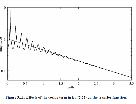 The cosine function of the transfer function describes the so-called λ/2-ripple, caused by the multiple reflections of the signal at the transducers. For αλ > 3 the denominator of previous equation equals approximately 1, so that an exponential decay of the sound wave p R ∼ e−αX follows. In Fig.(3.11) a plot is given as an example. It illustrates that at decreasing sample length X the standing wave contributions of the ultrasonic field within the cell become more and more important.