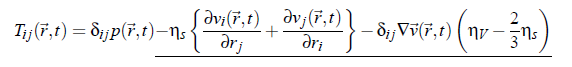 However, in the general case when the viscosity of fluid is not neglected, the expression of momentum density has to be completed to account for the volume viscosity ηV and the shear viscosity η. Consequently: