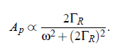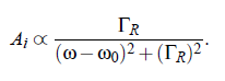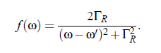 On the one side, the photon flux i(t ) is proportional to the light intensity, |I (ω)| = |E (ω)|^2 . On the other side, the considered Rayleigh line is of the shape of a Lorentz curve, with the the half-bandwidth ΓR and the center frequency ω_0: