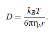 Another important expression for the evaluation of DLS data is given by the Einstein-Stokes relation, which relates the diffusion coefficient D, the shear viscosity ηs and to the radius r of a particle: