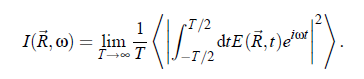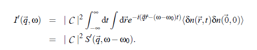 In principle, the relation describes the scattered light completely. In practice, however, the light intensity is obtained from the detectors. The intensity is defined as the ensemble mean: