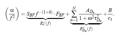 The measured total attenuation data contain contribution from critical fluctuation but also from noncritical processes. Assuming that all parts contribute to the ultrasonic attenuation spectrum additively, the ultrasonic spectra can be analytically represented as a sum of N Debye terms, the background contribution and the critical contribution: :