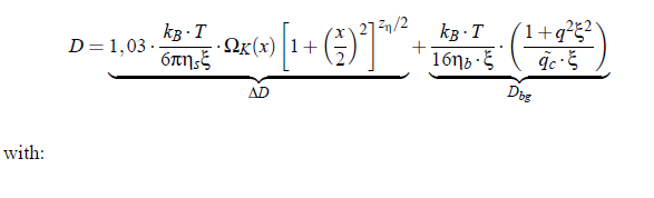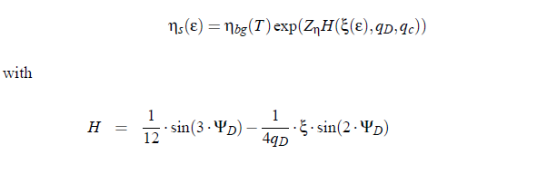 For large ε, the crossover function behaves as H (ξ(ε),q_D,q_c) → 0, so that η → ηbg. In the asymptotic limit the equation simplifies to the power law in. The influence of the crossover function is not only restricted to the shear viscosity. The cut-off wave numbers qc and qD play also an important role in the mutual diffusion coefficient, which is given by: