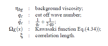 here Q0 denotes the system-dependent critical amplitude and ξ the fluctuation correlation length. The background viscosity ηbg is given by the relation: